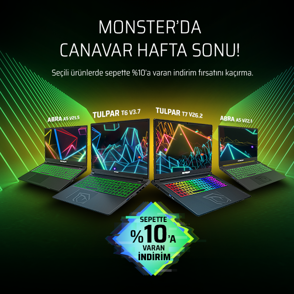 İsimlerini Türk mitolojisinden alan notebook serilerini; Gaming, Business ve Workstation kategorileri altında bir araya getiren Monster, üst seviye donanım bileşenleriyle güçlendirilen taşınabilir bilgisayarları sayesinde masaüstü çalışma konforunu mobil platformda yaşamanızı sağlıyor.