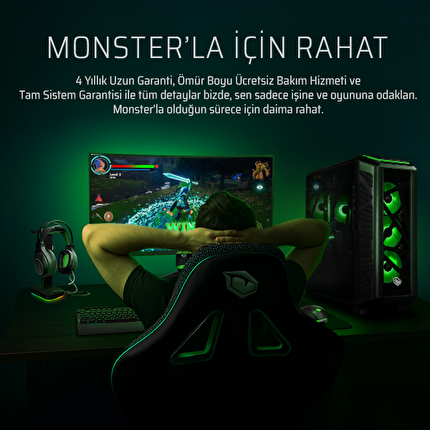 4 Yıllık Uzun Garanti, Ömür Boyu Ücretsiz Bakım Hizmeti ve Tam Sistem Garantisi ile tüm detaylar bizde, sen sadece işine ve oyununa odaklan. Monster'la olduğun sürece için daima rahat